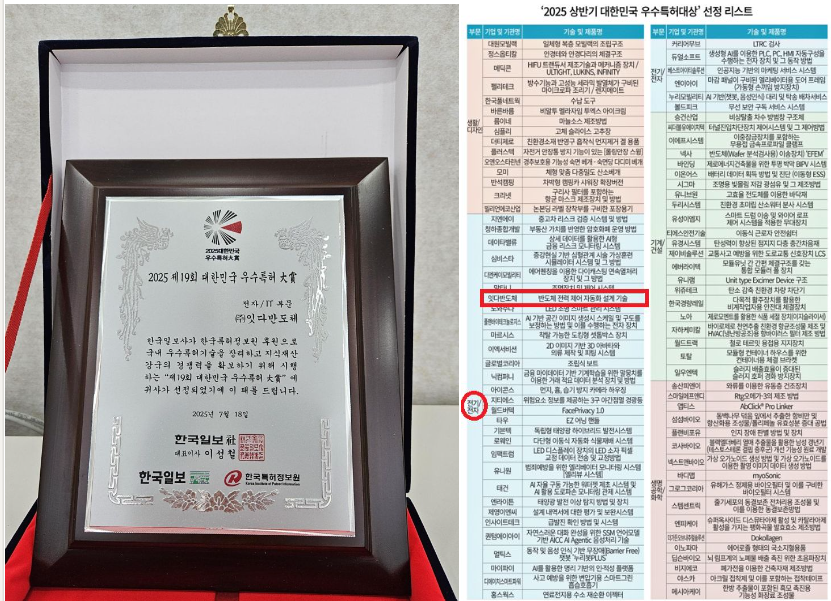 잇다반도체가 ‘2025 대한민국 우수특허대상’에 선정되었습니다!!🎉